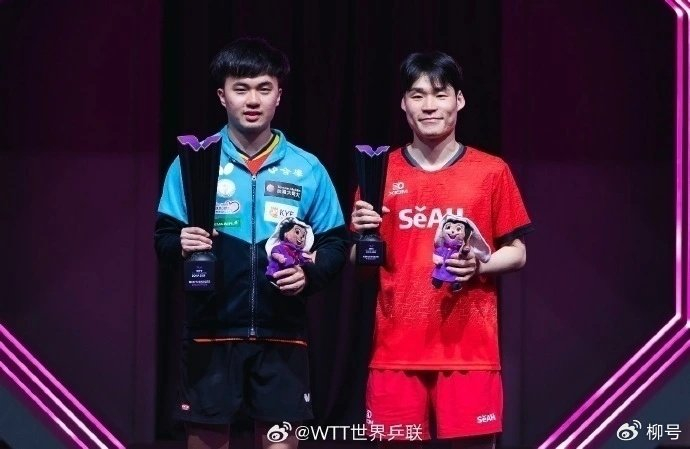 由于“大头”没有参赛,林诗栋并未表现出色应有的霸气,他在男单半决赛与与韩国选手张禹珍的比赛中,面对对手的疯狂进攻,总比分2-4败下阵来。而在另一场半决赛,中国台北选手林昀儒展现出了超级大心脏,他以4-3险胜志在夺冠的日本选手张本智和。